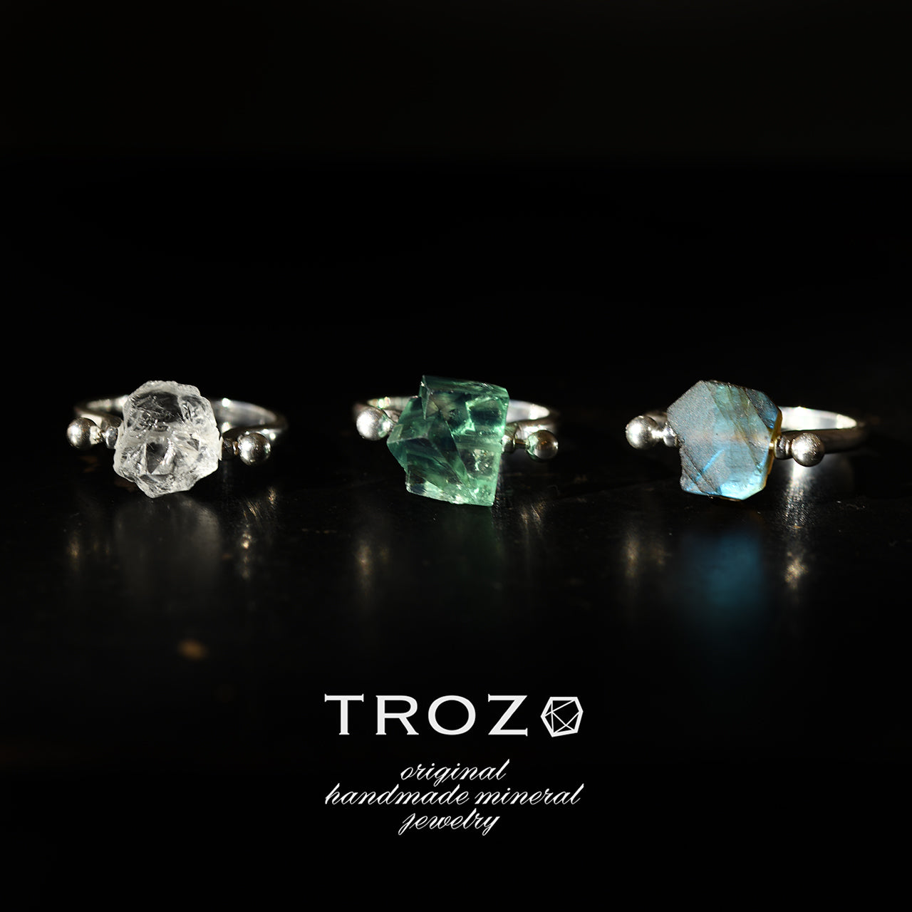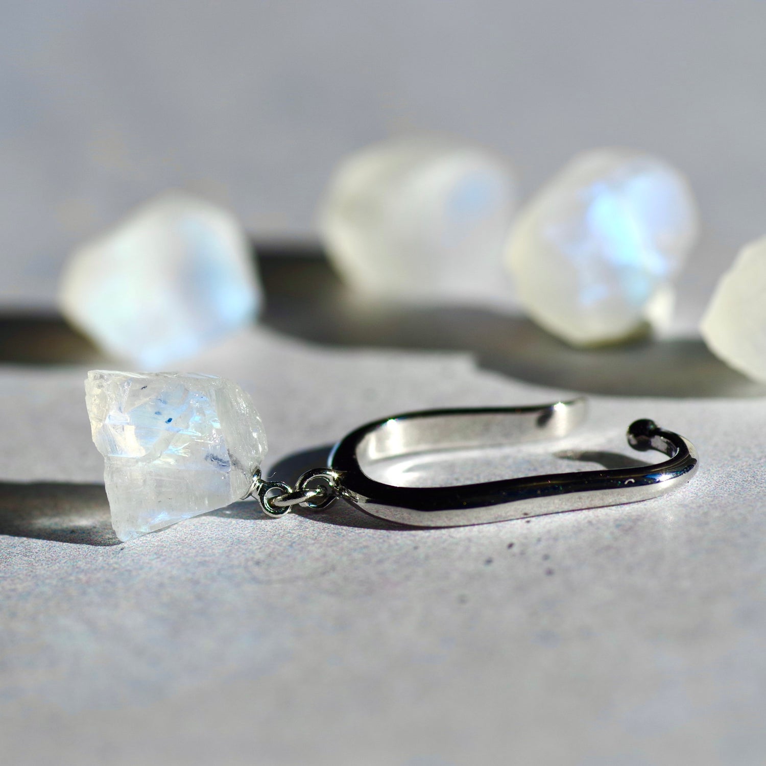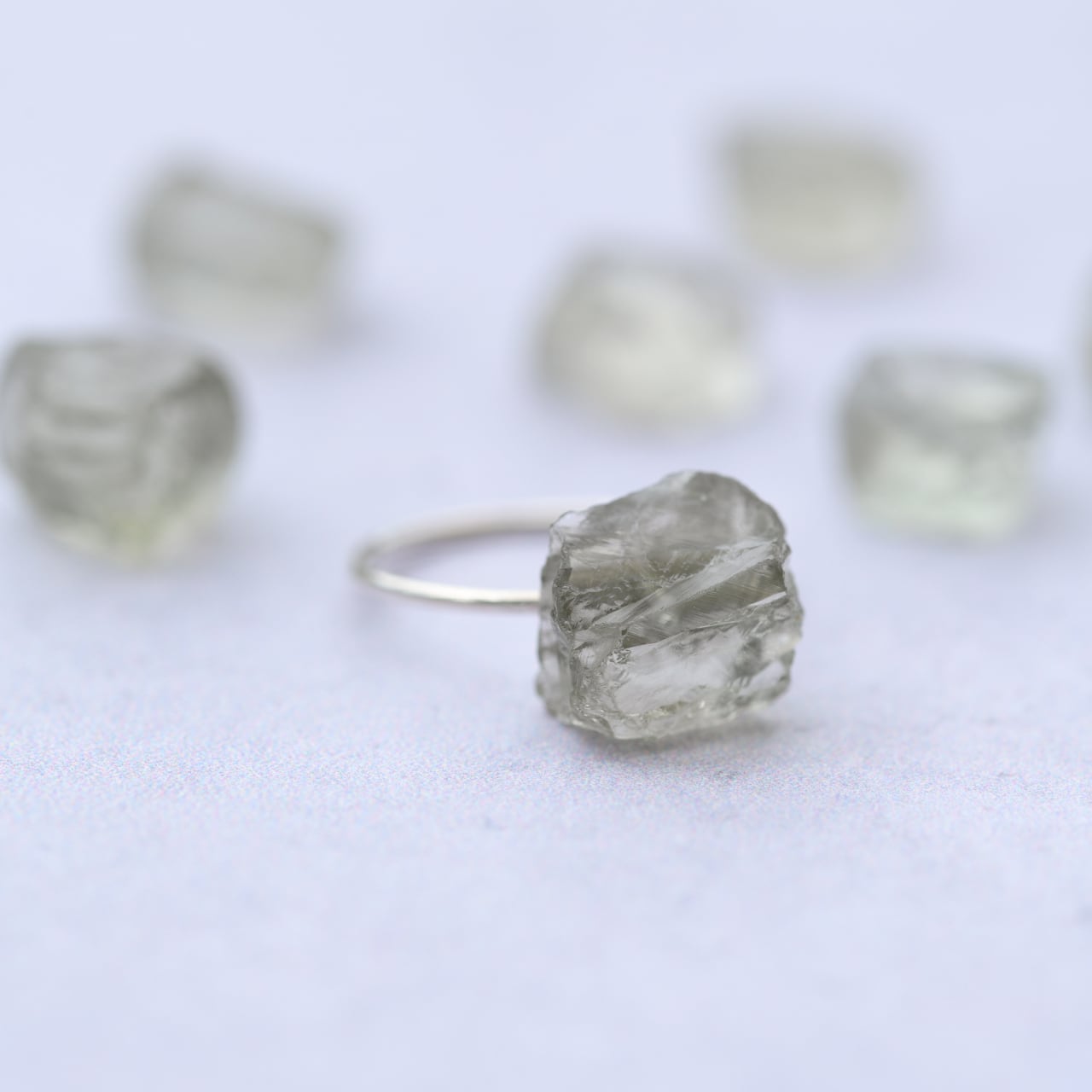 We designed this ring to showcase the raw strength and beauty of natural minerals. The concept centers around a raw stone with a hole drilled through it, creating a bold and unique look.