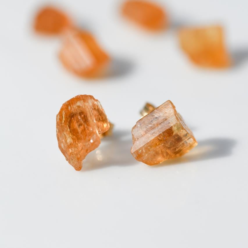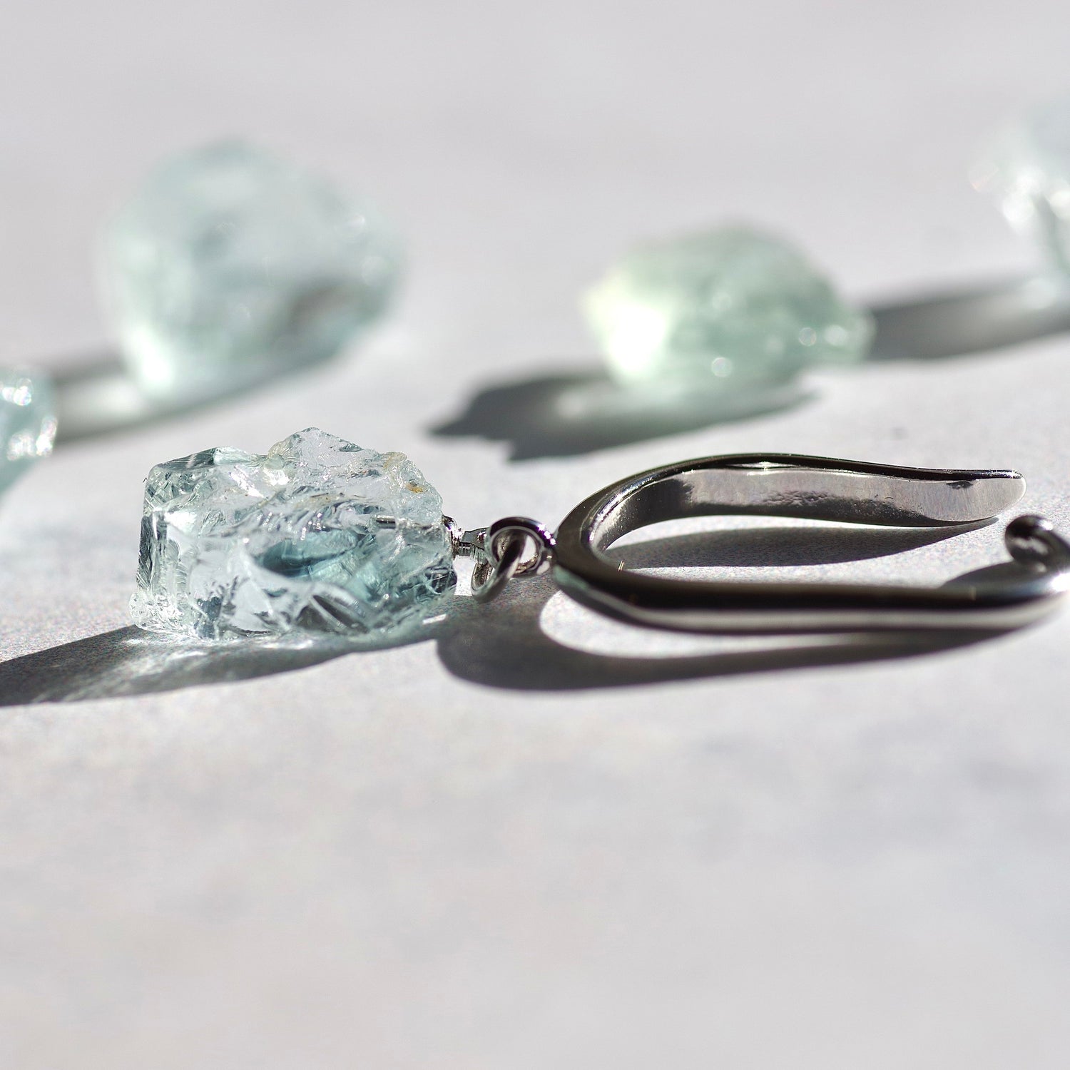[One of a kind] Aquamarine Raw Stone Earrings | Handmade Natural Stone Jewelry [Heat Collection]