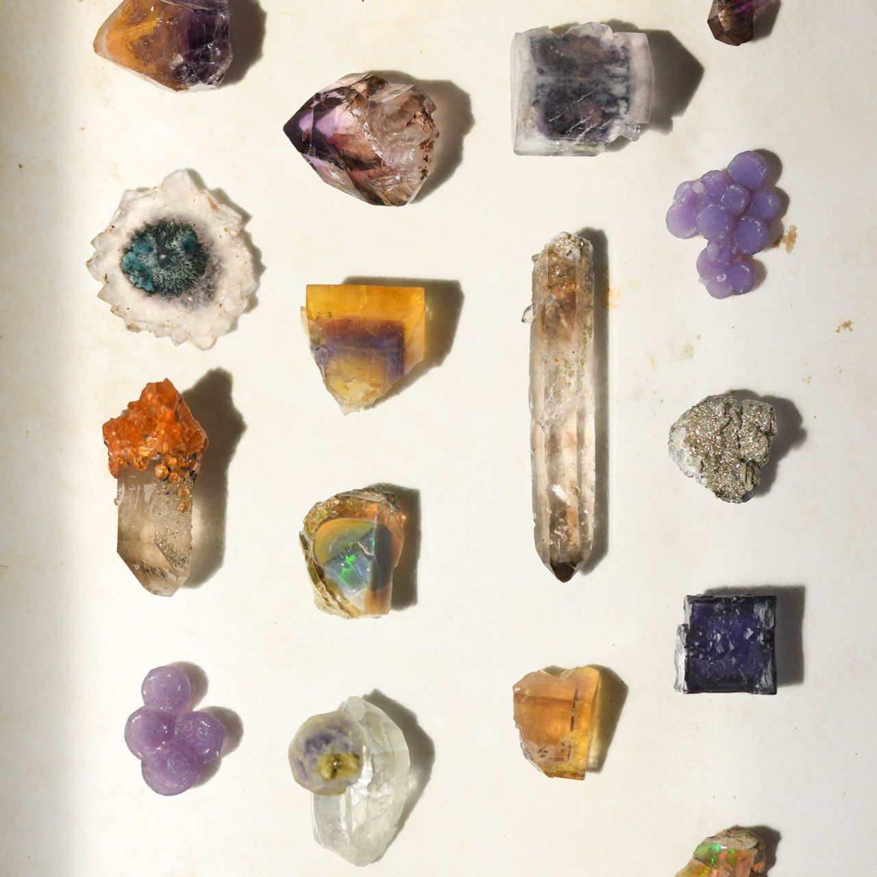 Our shop offers collections created based on specific themes. The Nightfall Collection is inspired by the sky right after sunset, capturing the beauty of autumn skies as they transition from dusk to night. The collection uses stones like fluorite, amethyst, oil-in-quartz, and grape agate to represent the lights of the moon and stars.